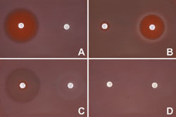 With respect to this last point, I believe that genotypically homogeneous groups of patients will play an essential role in the development of novel therapies for the following reasons. First, it is well recognized that many important clinical entities such as retinitis pigmentosa, age-related macular degeneration, and glaucoma are genetically and pathophysiologically heterogeneous [2-4]. Thus, it seems unlikely that a single type of therapy would be effective against all the different forms of any of these diseases any more than a single type of antibiotic would be likely to be effective against all types of bacteria. Figure 1 extends this antibiotic analogy to illustrate the effect that mechanistic heterogeneity would have on the search for a new drug. In panels A and B, two antibiotics are tested sequentially against pure cultures of two different microorganisms. It is quite easy to see that each of these drugs is very effective against one of the microorganisms but not the other. If one mixes these organisms together before testing with the antibiotic discs (panel C) it is harder to see the therapeutic effect of either drug; and, if this were one small part of a large screen for new drugs, one might decide that neither of these agents was sufficiently promising for further testing. If one mixes ten different organisms together (panel D) the efficacy of the two drugs that was so apparent in the first two panels is completely obscured. Having access to molecularly homogeneous patient populations is analogous to having pure cultures of bacteria to test antibiotics against. Of course, we hope that any new drug will be broadly efficacious but it seems unwise (and unnecessary) to count on this broad efficacy when doing so might cause us to miss the value of an important class of new compounds.